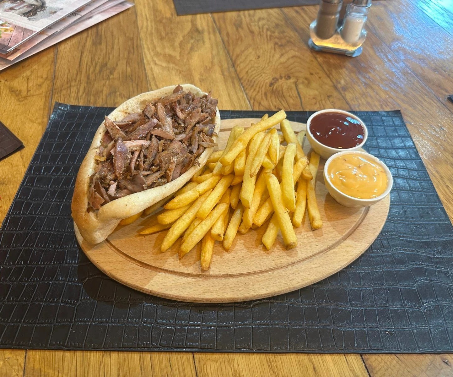 Agneau mariné grillé dans du pain galette